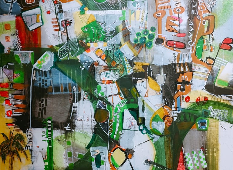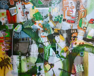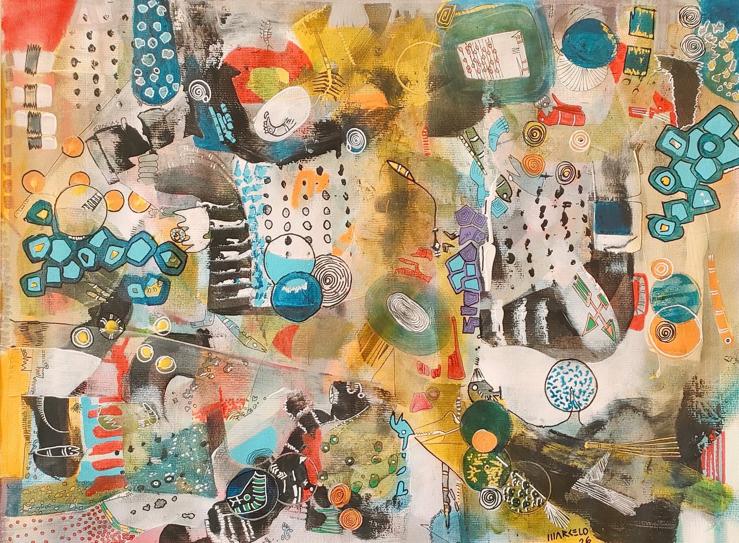 Marcelo encuentra en la pintura abstracta un territorio sin fronteras. Con acrílico, técnica mixta, telas y papel, construye mundos donde el color y la forma se entrelazan, invitando a cada espectador a mirar, sentir y reinventar la obra desde su propia experiencia.