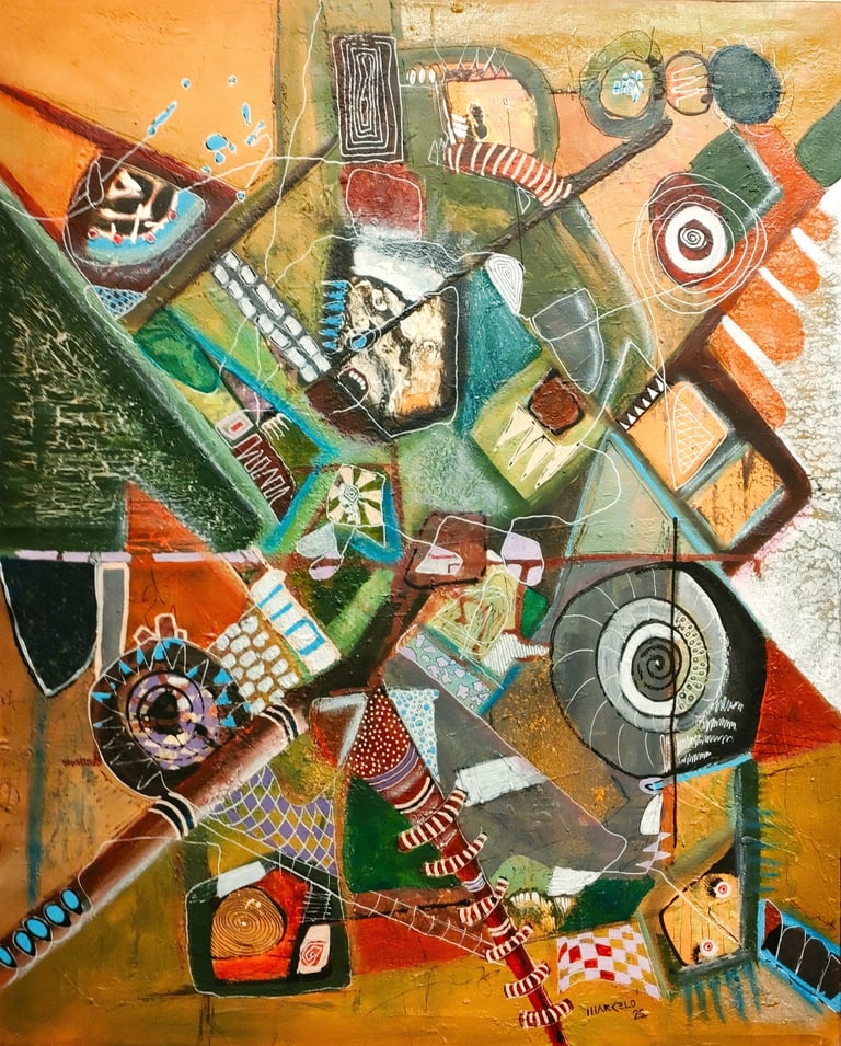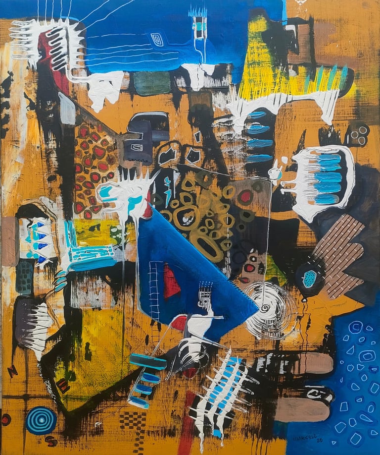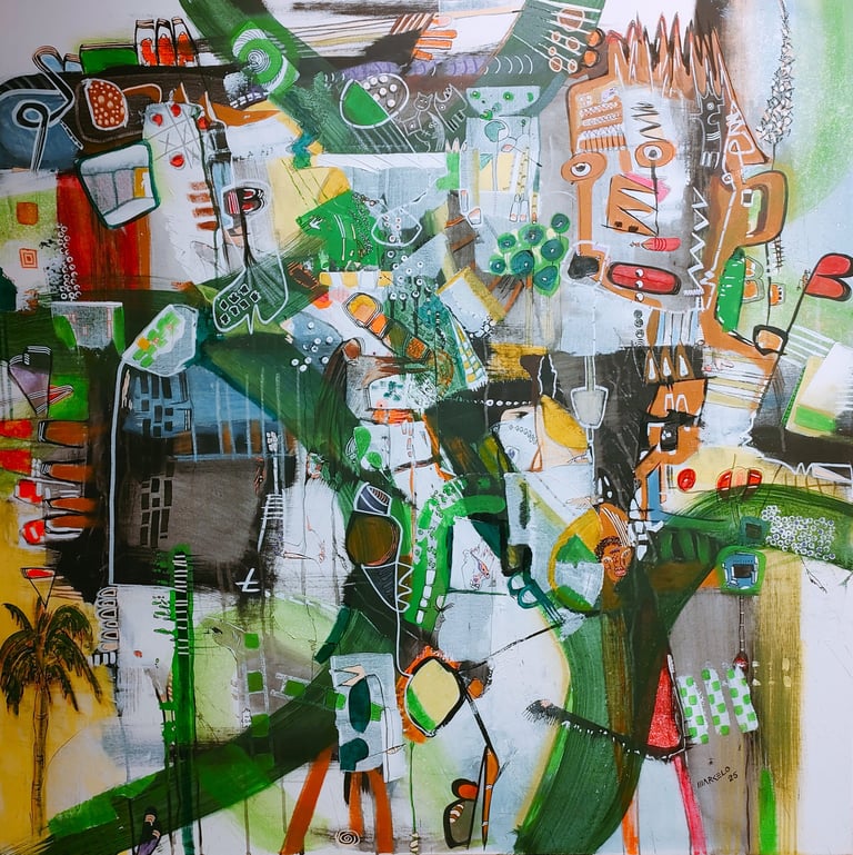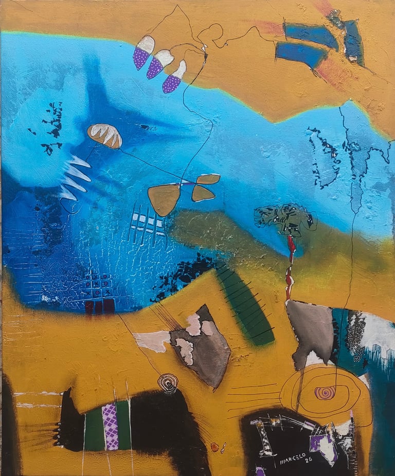 Marcelo construye universos abstractos donde cada trazo es un impulso, cada textura, una huella. En las obras el color habla, la forma sugiere y el vacío respira.